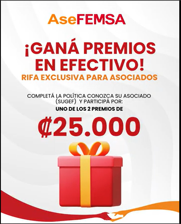 📢✨ ¡Marzo trae premios en efectivo en ASEFEMSA! ✨📢Durante este mes, todos los asociados que completen la Política Conozca su Asociado (requisito solicitado por SUGEF), estarán participando en la rifa de:💰 2 premios en efectivo de ₡25.000 cada unoPara participar, solo deben presentarse en los Puestos de Servicio al Asociado y realizar el trámite.📲 Más […]